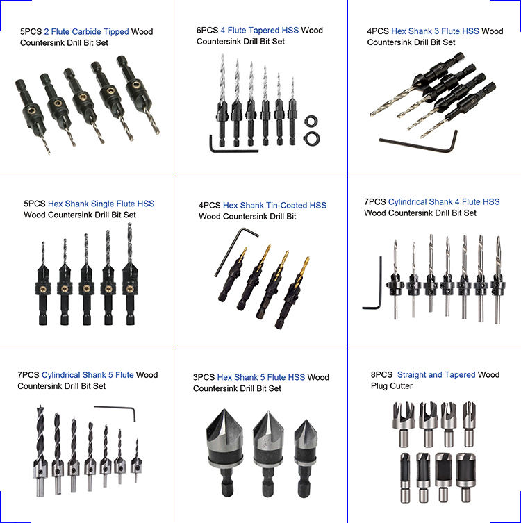 3PCS Hex Shank 5 Flute Wood Countersink Drill Bit Set for Wood Screw