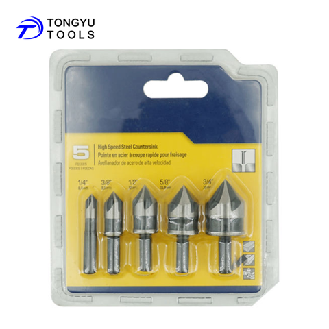 5Pcs 1/4" to 3/4" Round Shank 82 Degree 5 Flutes HSS Countersink Drill Bit Set for Metal Deburring
