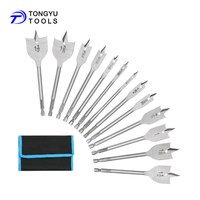 13Pcs Flat Wood Spade Drill Bit Set 1/4" to 1-1/2", 1/4" Hex Shank Paddle Hole Cutter for Woodworking Drilling in Nylon Pouch