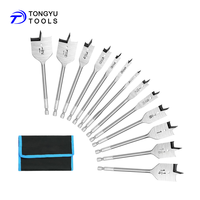 13Pcs Flat Wood Spade Drill Bit Set 1/4" to 1-1/2" , 1/4" Hex Shank Paddle Hole Cutter for Woodworking Drilling in Nylon Pouch
